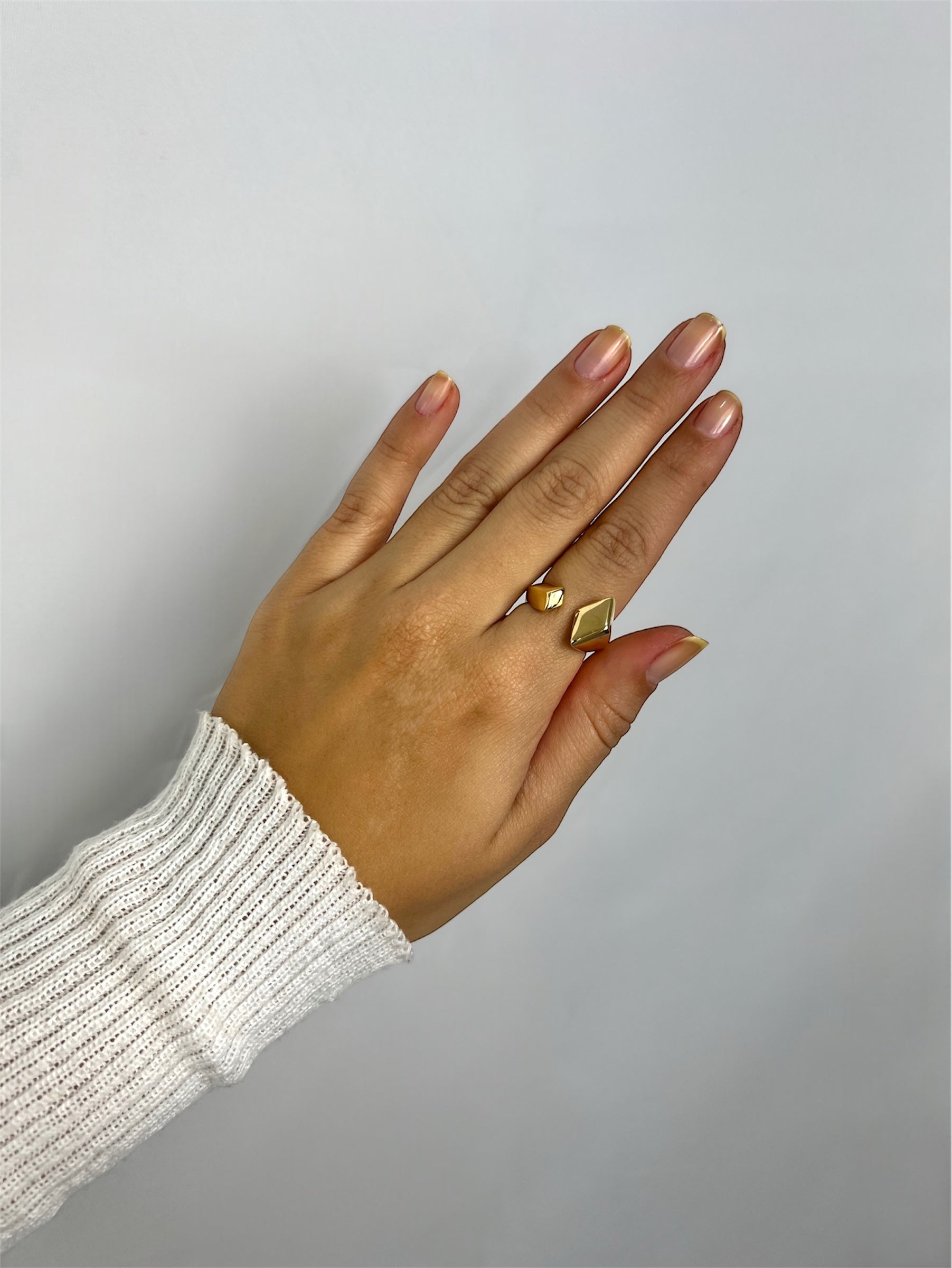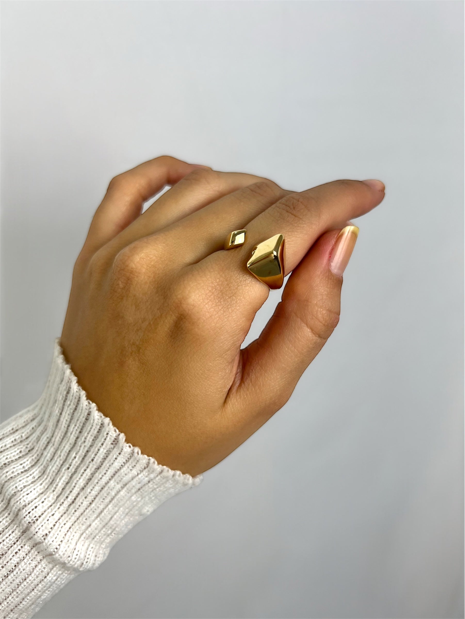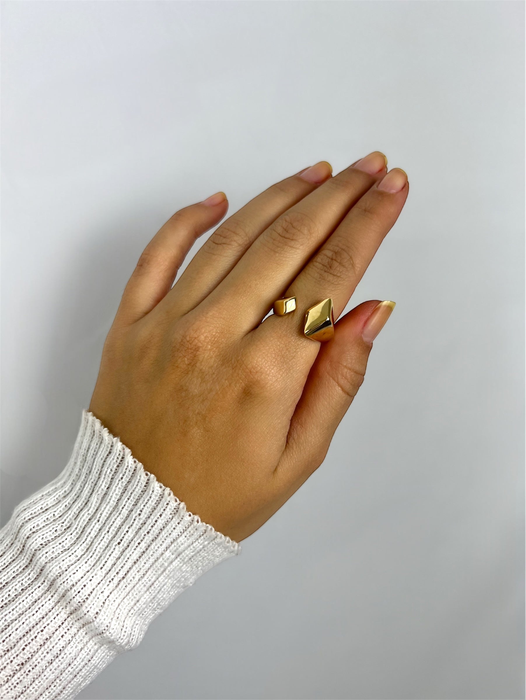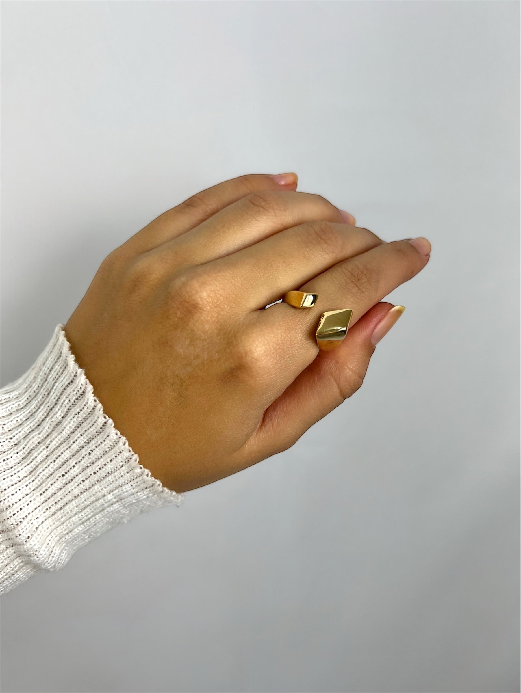 Anel semijoia orgânico ajustável com design moderno, que une elegância e estilo contemporâneo. Versátil e delicado, adapta-se perfeitamente ao dedo, trazendo um toque moderno e sofisticado ao look.