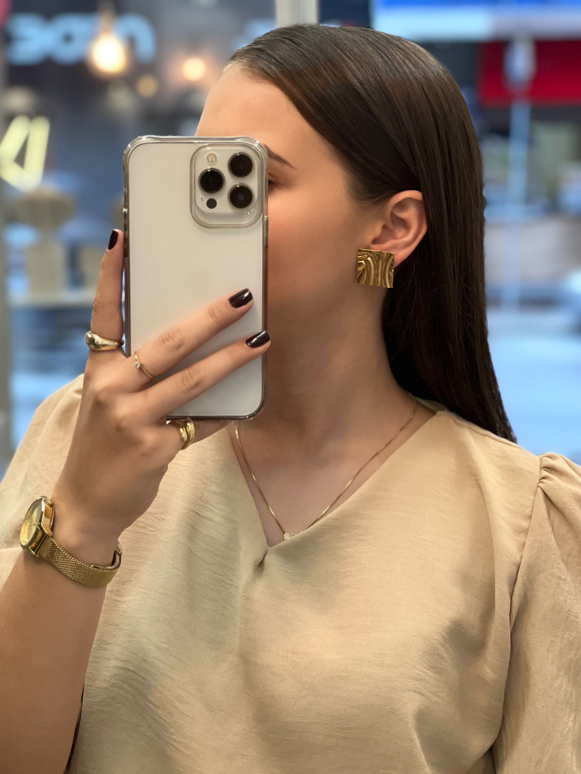 Brinco Quadrado Martelado