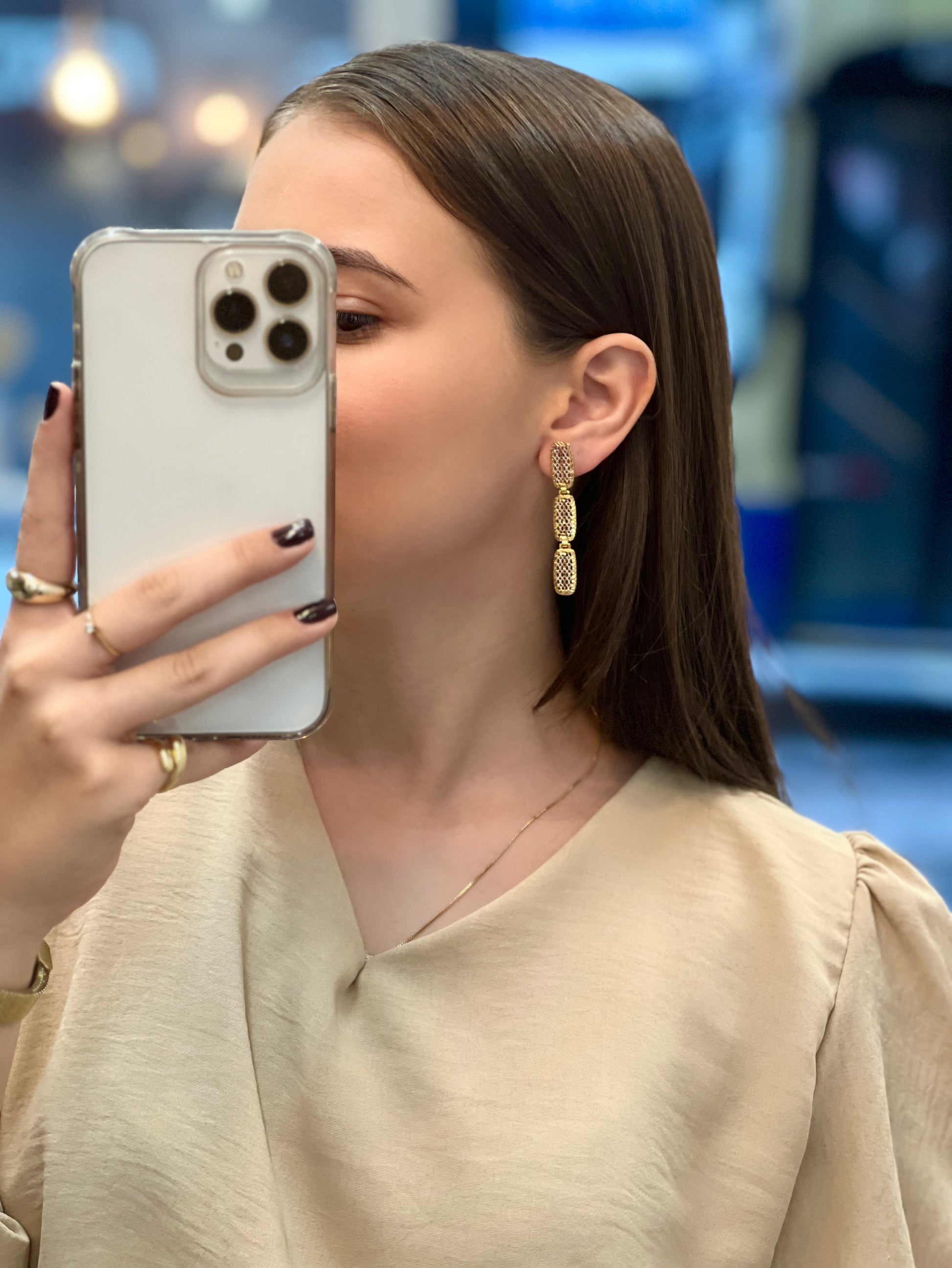 Brinco Três Tons Retangular