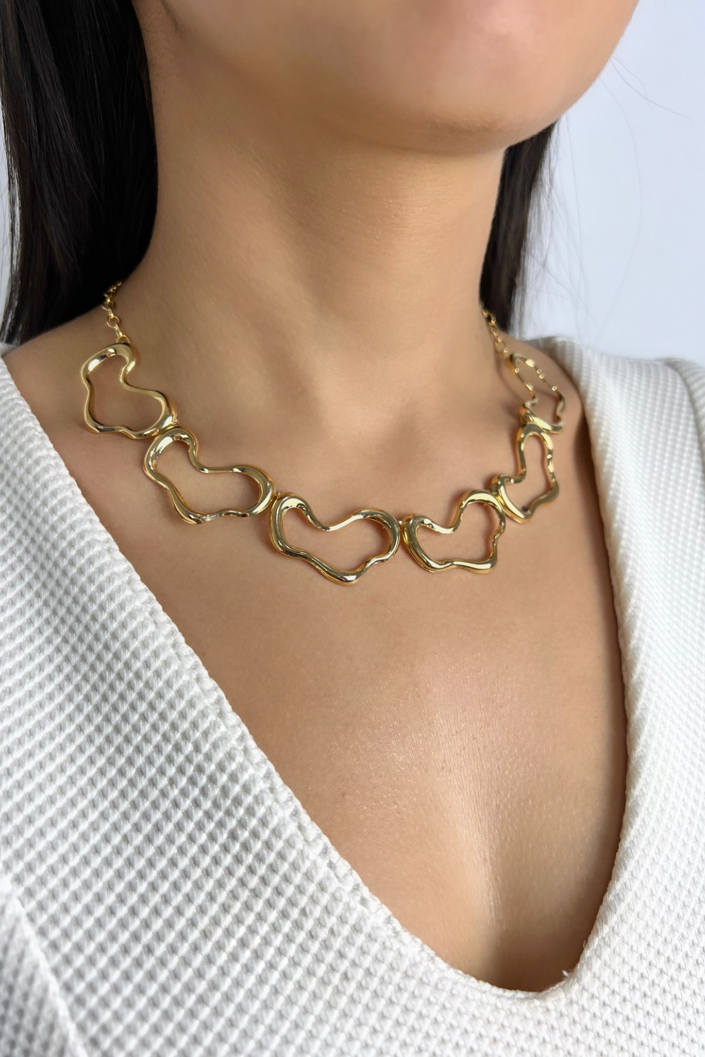 Choker Semijoia maximalista orgânica com 50 centímetros de comprimento, marcada por design ousado e fluido. Uma peça imponente que valoriza o pescoço com elegância e estilo contemporâneo.