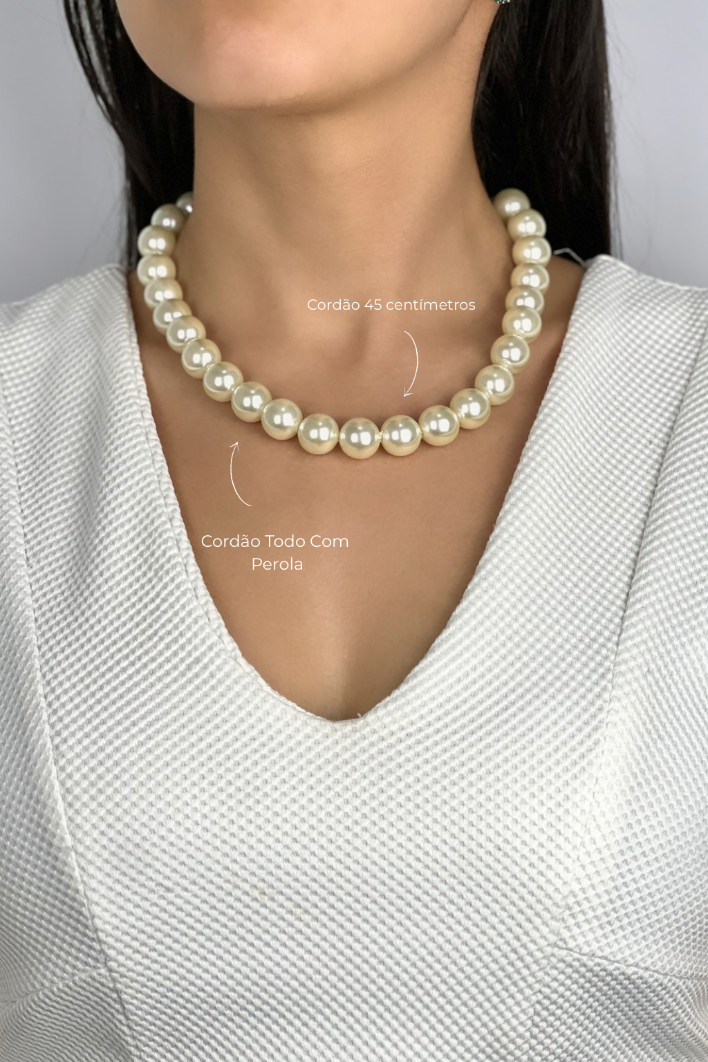 Colar semijoia todo em pérola tamanho GG, clássico e atemporal. Com 45 centímetros de comprimento, é a escolha perfeita para quem busca um toque de sofisticação e delicadeza em qualquer ocasião. Cordão possui extensor de 5 centímetros.