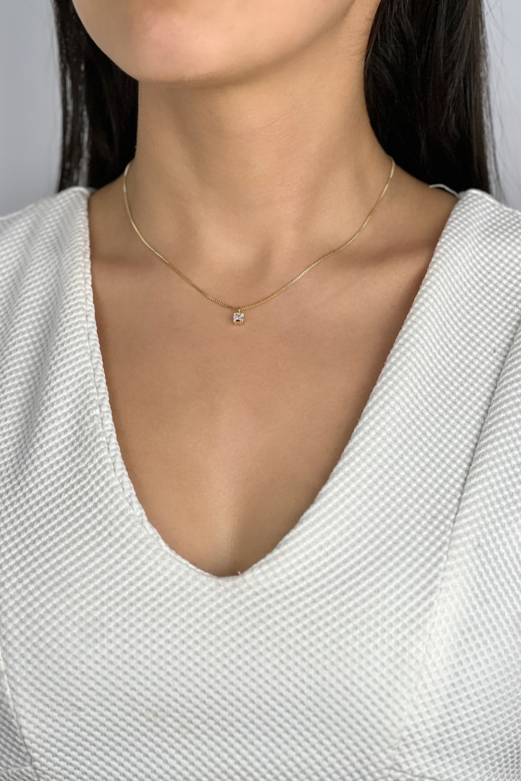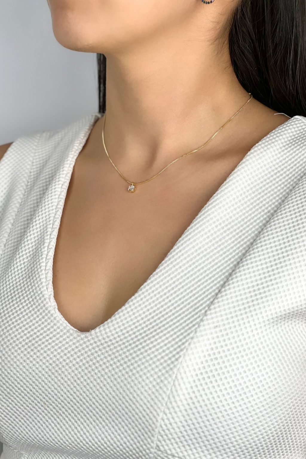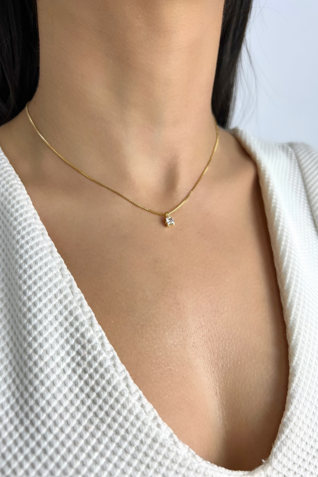 Colar com ponto de luz em formato quadrado com pedra de zircônia, moderno e elegante. Com 30 centímetros de comprimento, é a peça ideal para adicionar um toque de brilho sutil e sofisticado ao visual. O cordão possui extensor de 10 centímetros.