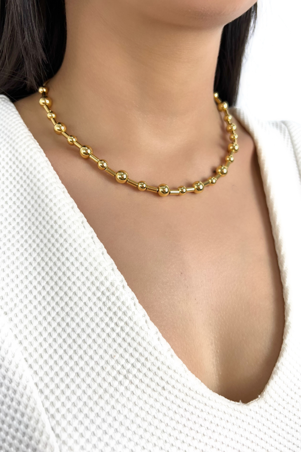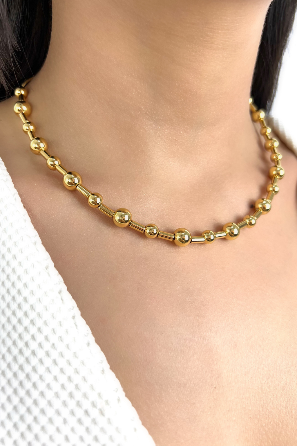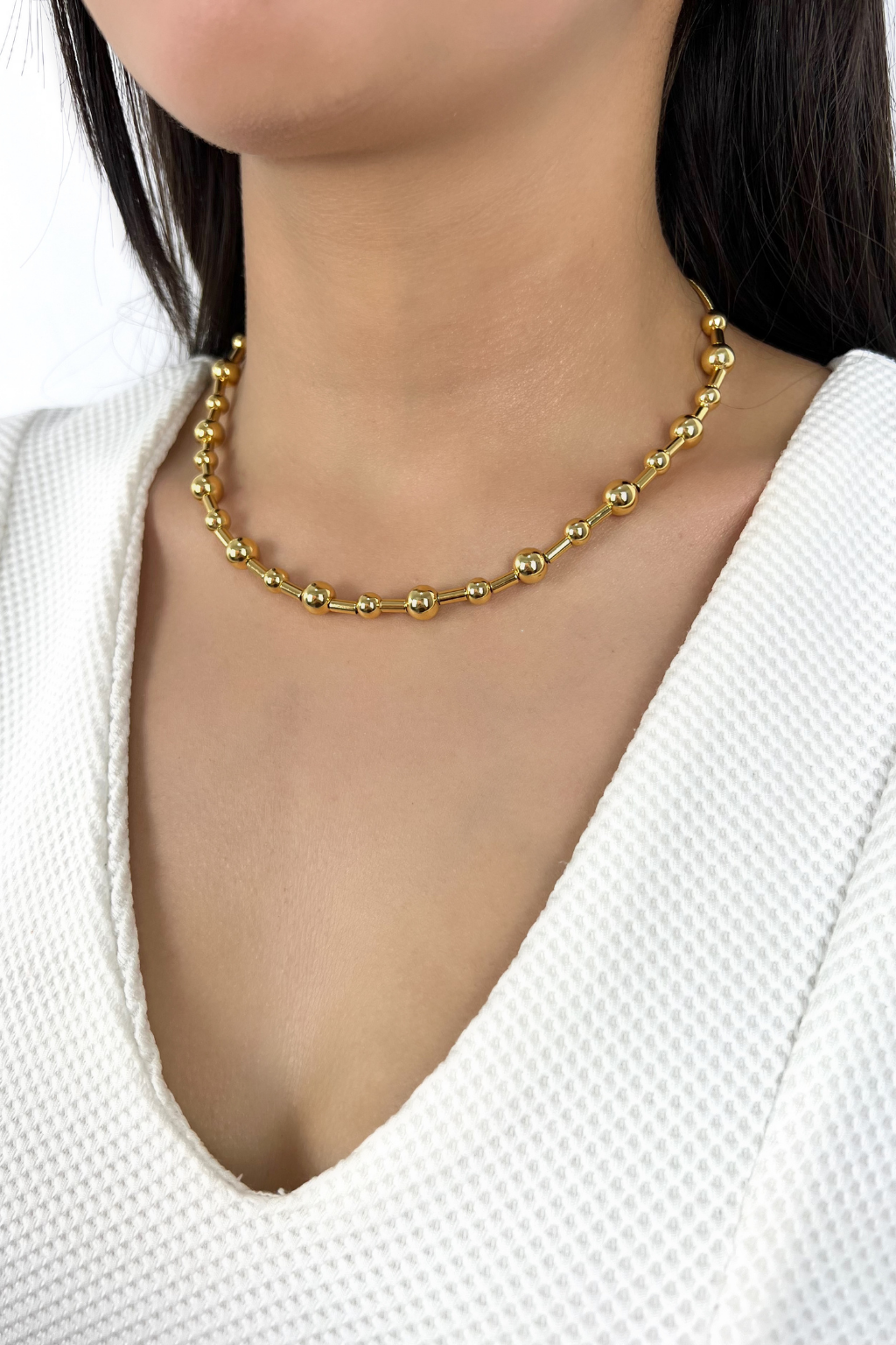 O Cordão com Bolas Lisas é uma semijoia moderna e versátil, perfeita para quem busca elegância em cada detalhe. Com design composto por várias esferas polidas e 45 cm de comprimento, essa peça reflete a luz de forma sutil, trazendo um toque sofisticado e atemporal ao visual.