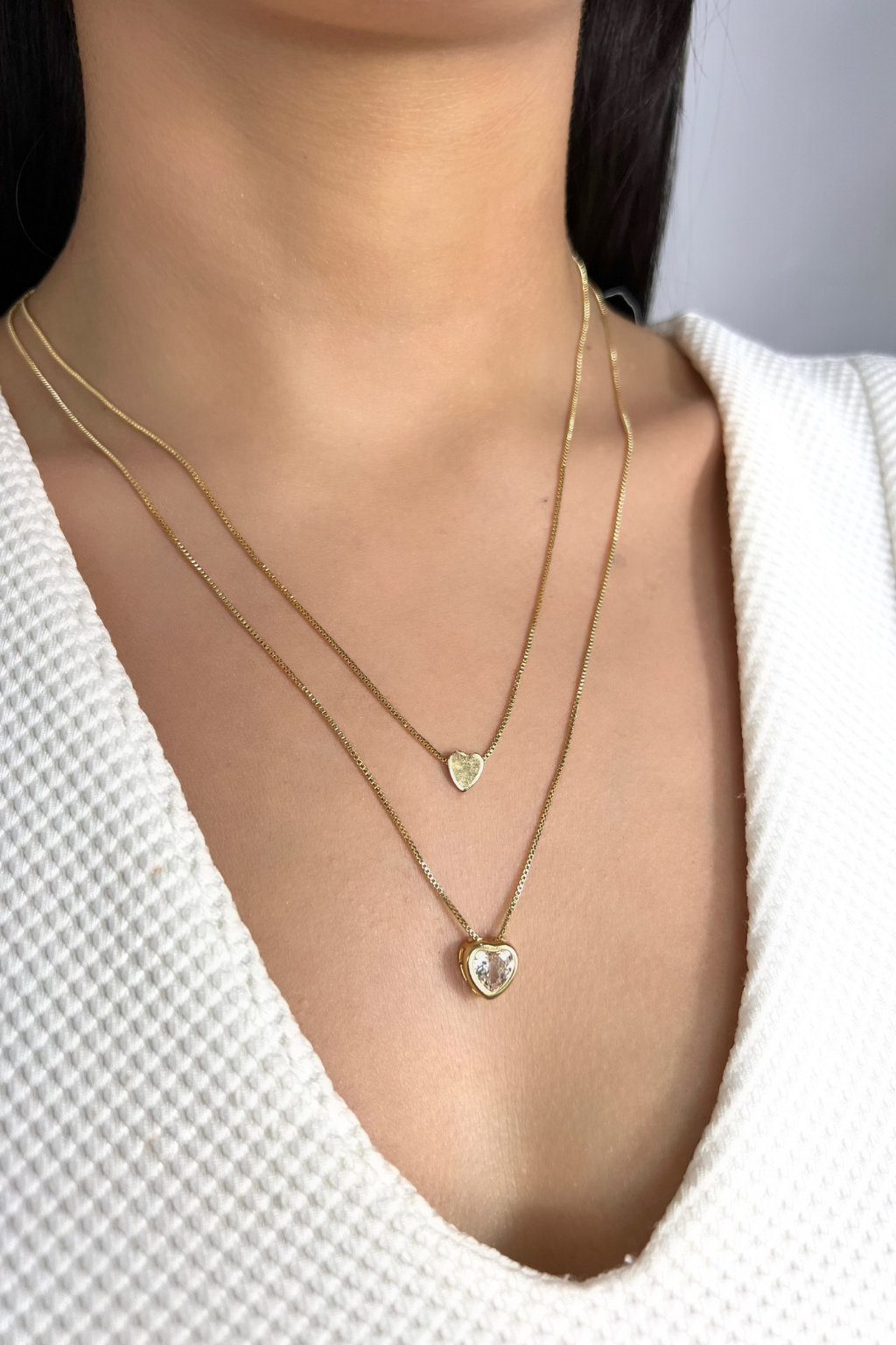 Conjunto de coração com colar duplo com coração liso, cordão possui 45 cm e cristais em cores variadas. Romântico e moderno, combina delicadeza e brilho na medida certa, perfeito para iluminar qualquer look com charme e elegância. O brinco possui pino atrás e tarraxa comum.