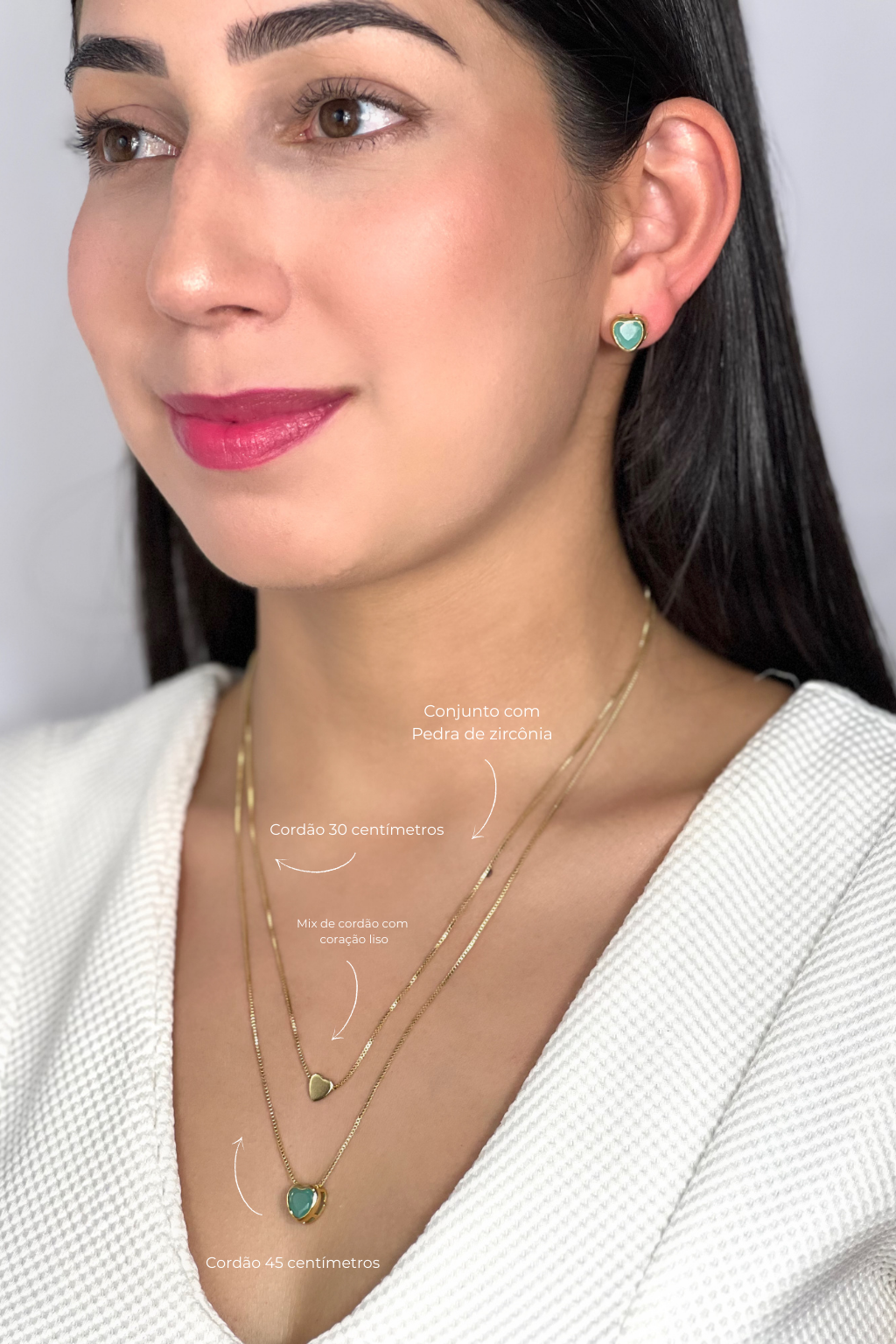 Conjunto Coração Com Cordão Duplo