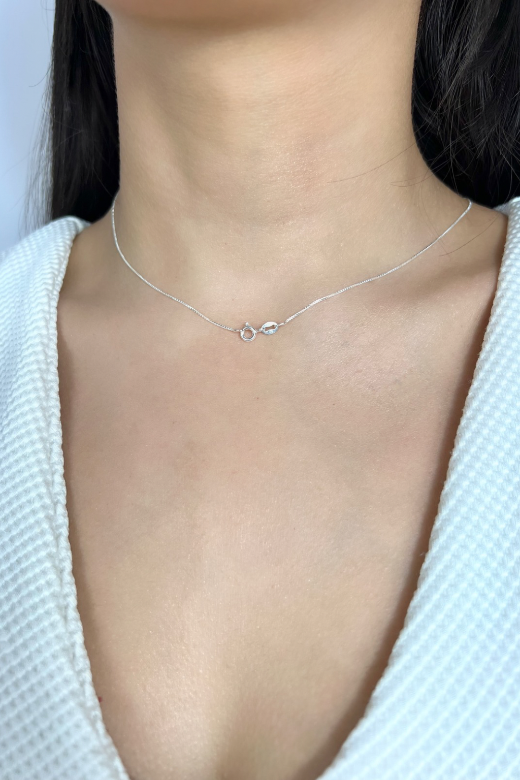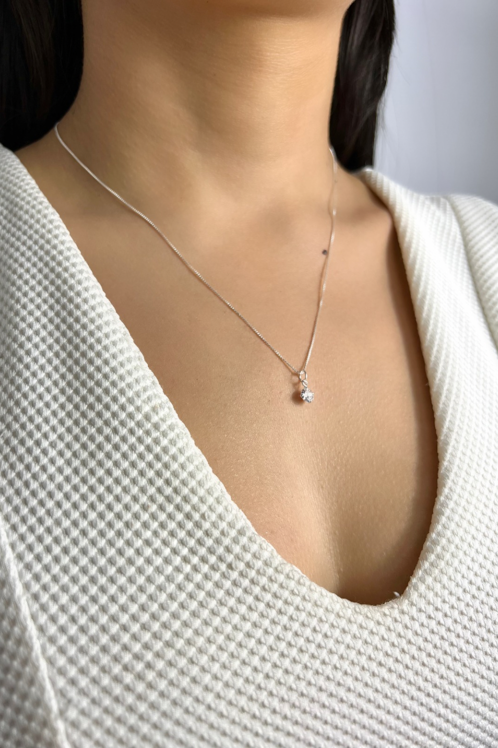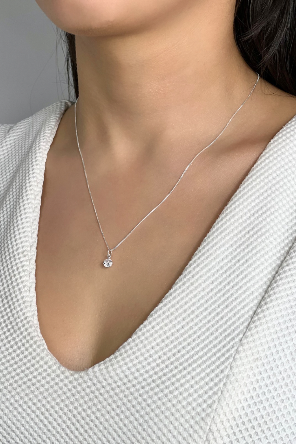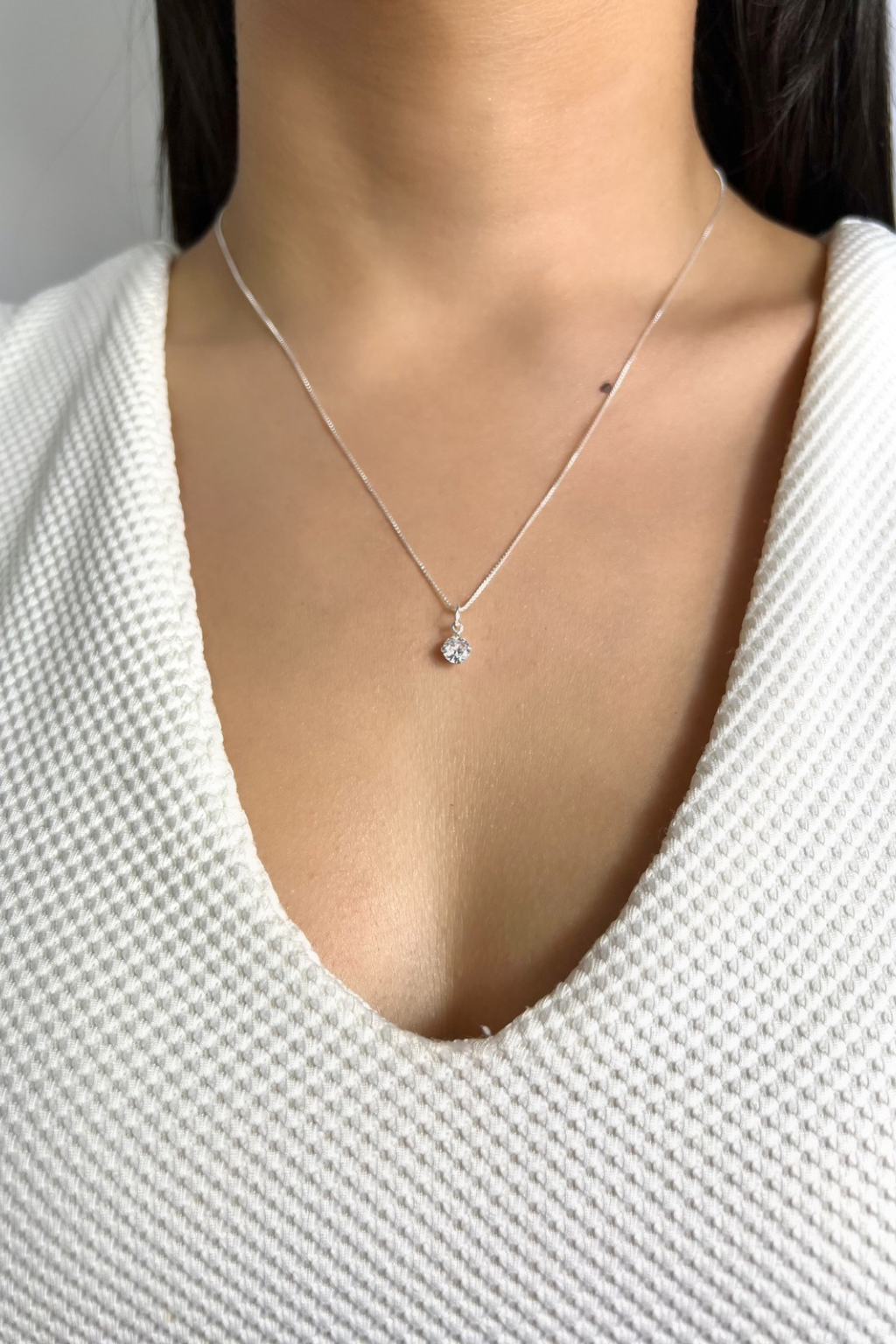 Cordão em prata 925 com pingente de ponto de luz redondo, medindo 45 centímetros. Clássico e elegante, é a peça ideal para destacar o brilho natural com delicadeza e sofisticação.
